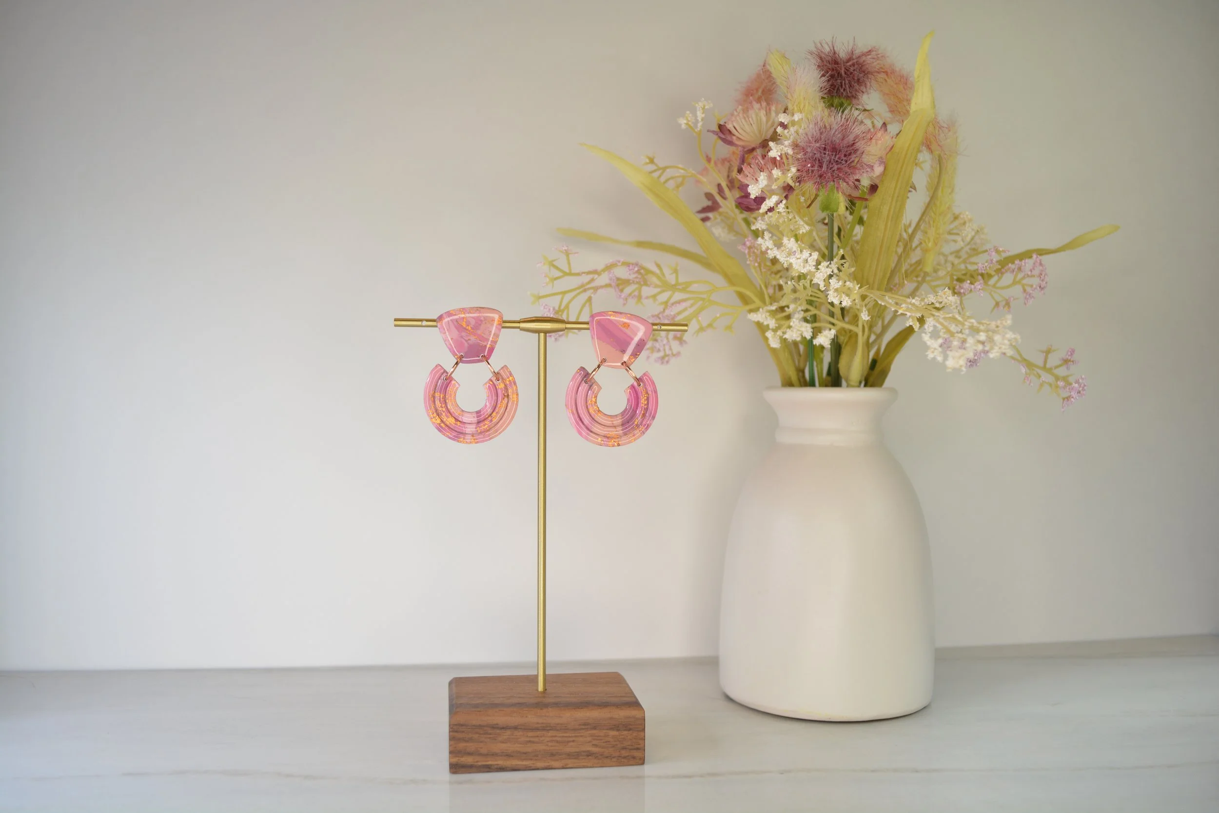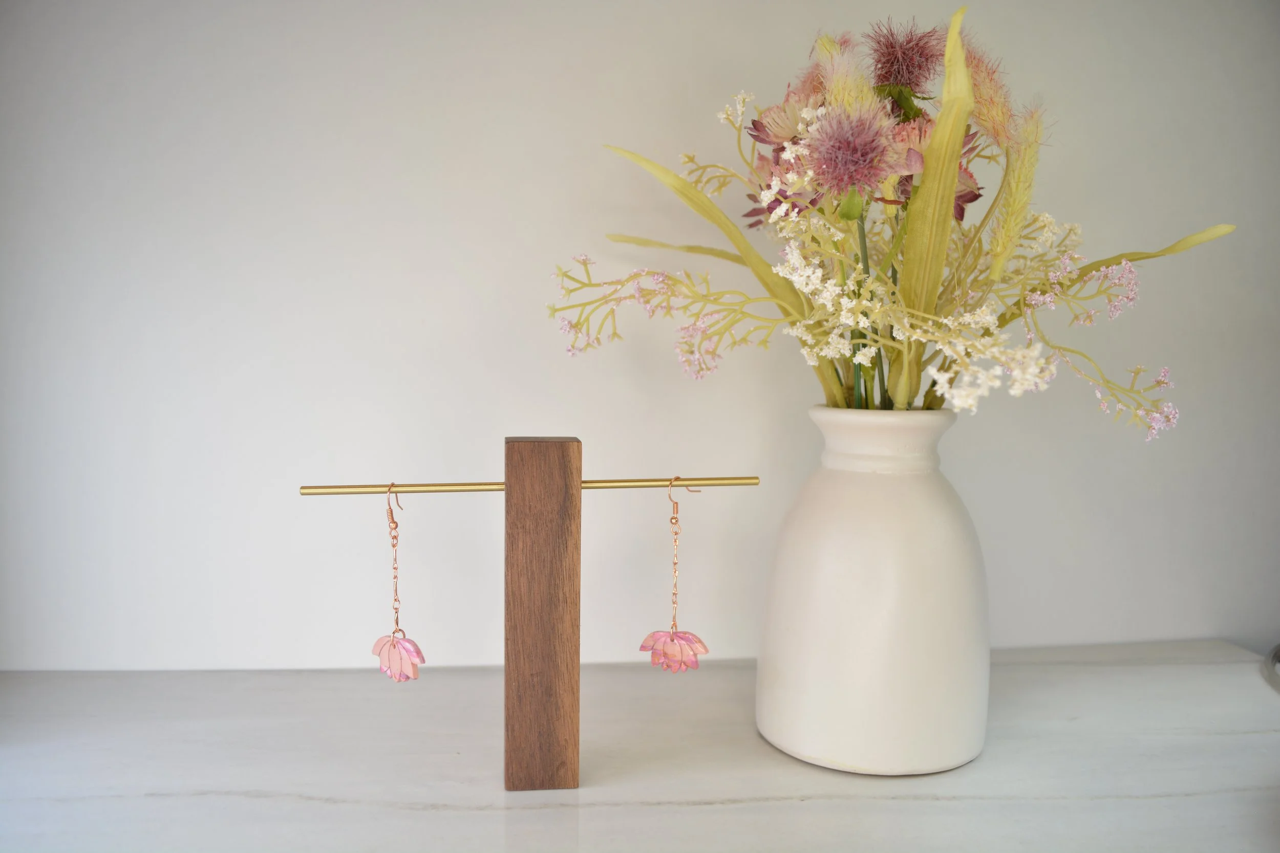 Pastel WatercolorPink and White Shimmer Floral Dangle