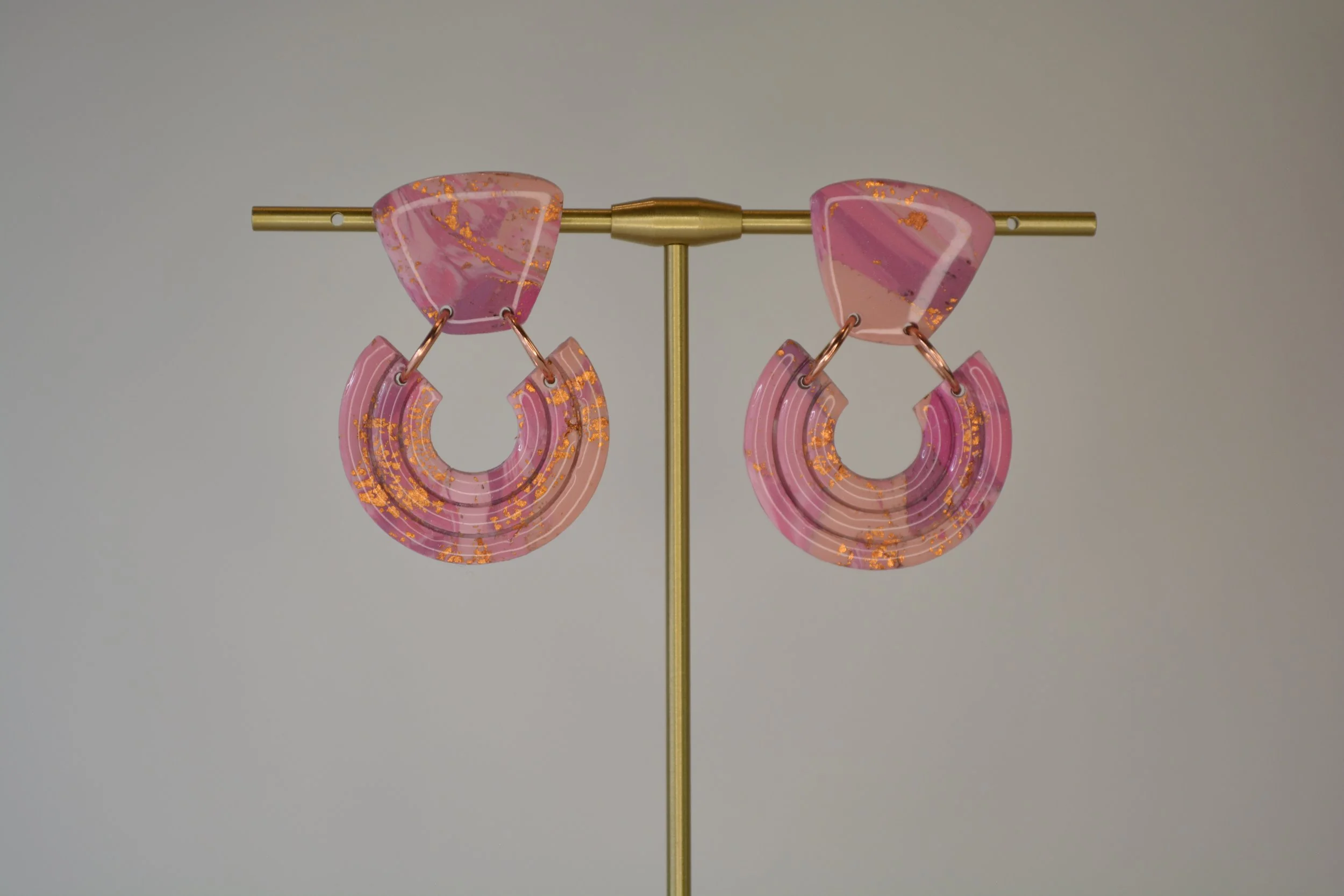 Pastel Watercolor Pink and White Shimmer Circle Dangle